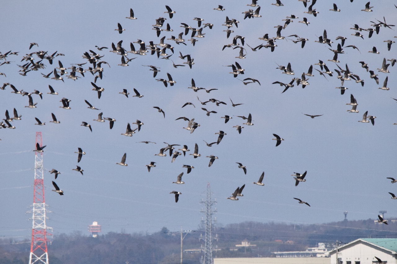 2月はマガン冬鳥 雪原の夕日 梅の花 水温む田んぼ