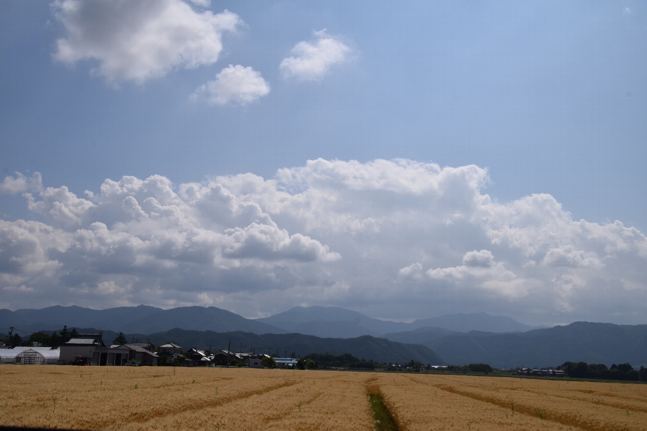 5月は田んぼに映る電車 鯉のぼり 夕雲、麦畑