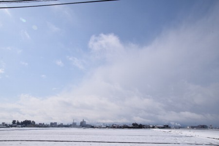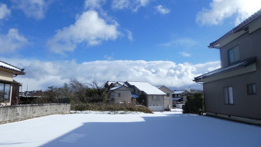 1月は冬空雪景色雪の日の青空 吹雪ホワイトアウト