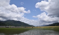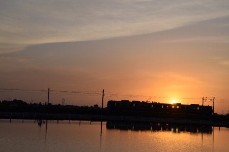 5月は田んぼに映る電車 鯉のぼり 夕雲、麦畑