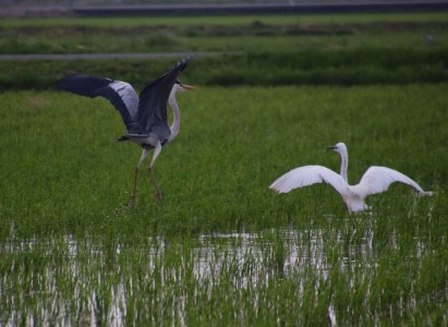 2月はマガン冬鳥 雪原の夕日 梅の花 水温む田んぼ