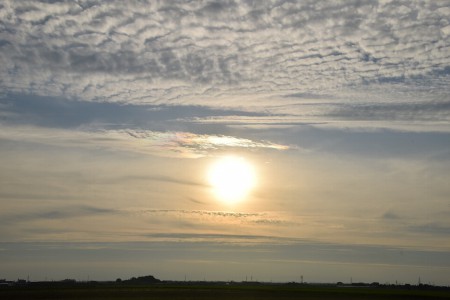 11月は澄んだ空 茜色の雲 海の夕焼け 彩雲