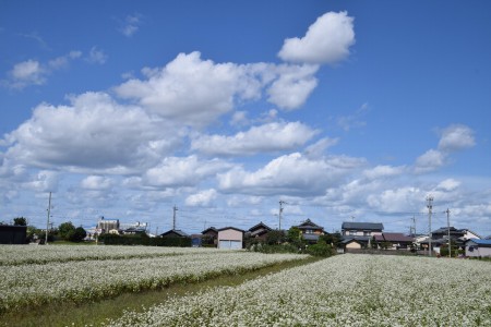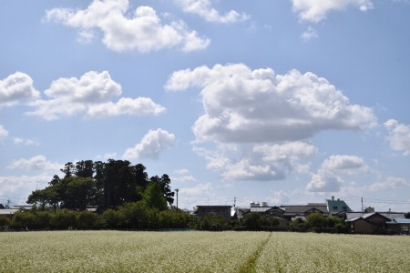 10月は流れる積雲 白いソバの花 遺跡の紅葉
