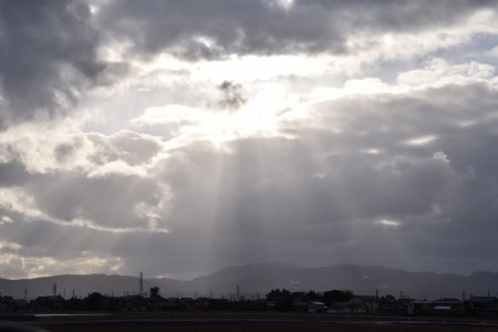 12月は冬の始まり 富士山冠雪早 雪混じりの雨 光芒