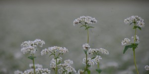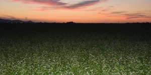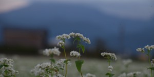 9月中頃になると稲が黄金色に穂を垂れた福井平野の水田地帯に白い小さな花が咲いている一角が現れる。秋咲きのソバの花だ。いままで気が付かなかったのに、いつの間にか一気に白い花が広がっている。