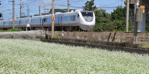 10月初め頃まで花が咲き、その後実を付け、収穫されて新蕎麦の粉となる。そばの花が咲く場所は毎年違っている。稲作の水田が減反で1年間土地を休めるため休耕田となってソバが植えられる。ことしはどんな場所に蕎麦が花をつけ、どんな風景を見せてくれるのか通勤時の楽しみな風景だ。