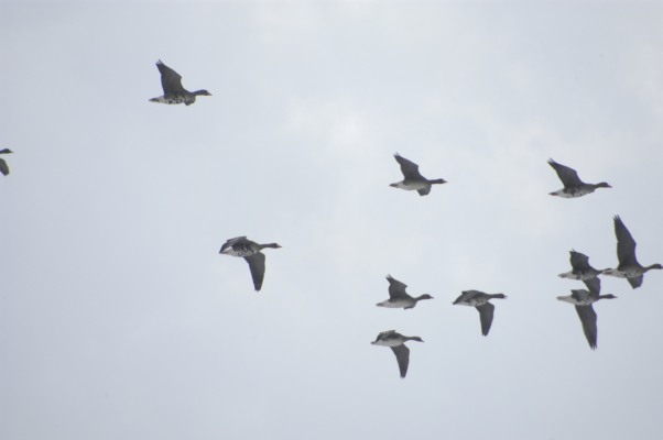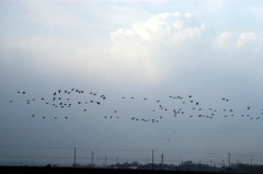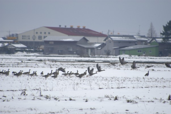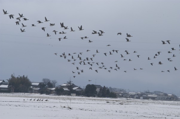 1/14 坂井町の水田に多くの雁が集まっていた。