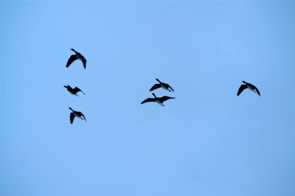| 1/18朝 快晴の空 やや方向もバラバラ 思い思いの編隊でやってきた |