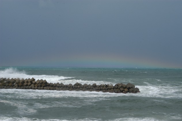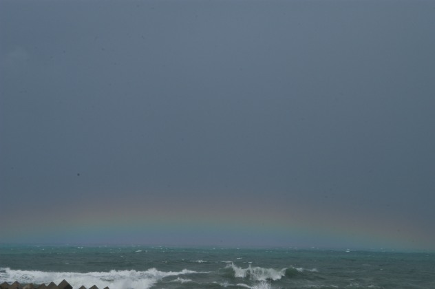 荒海の虹 10月29日午前11時ごろ 福井県三国町浜地海岸