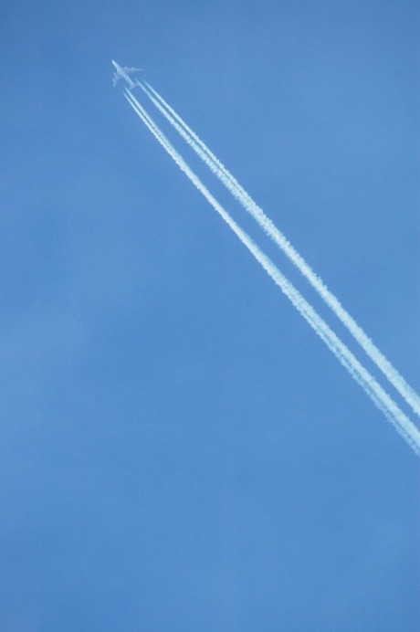 気象条件がマッチするとて美しい飛行機雲の尾を見せてくれる