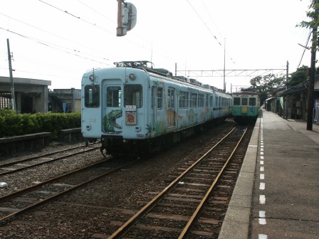 今でも8月の花火大会では臨時電車も満員となり、積み残しがでるほどだ。以前は国鉄の線路もあり、ここは国鉄の駅だった。京福は駅のすぐそばの眼鏡橋で立体交差して東尋坊口へと向かった。駅のそばには県漁連の市場もあり、冬は越前がにの水揚げで活気づく。