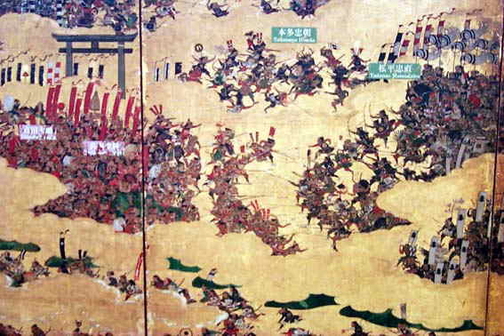国宝となっている「夏の陣合戦図」では赤いのぼり旗を立てた幸村の陣に忠直の軍は激しく打ちかけます。黒い馬にまたがる忠直もはっきりと描かれている。この戦いの様子は大阪城内に展示されている多数の模型を使ったジオラマで再現されています。